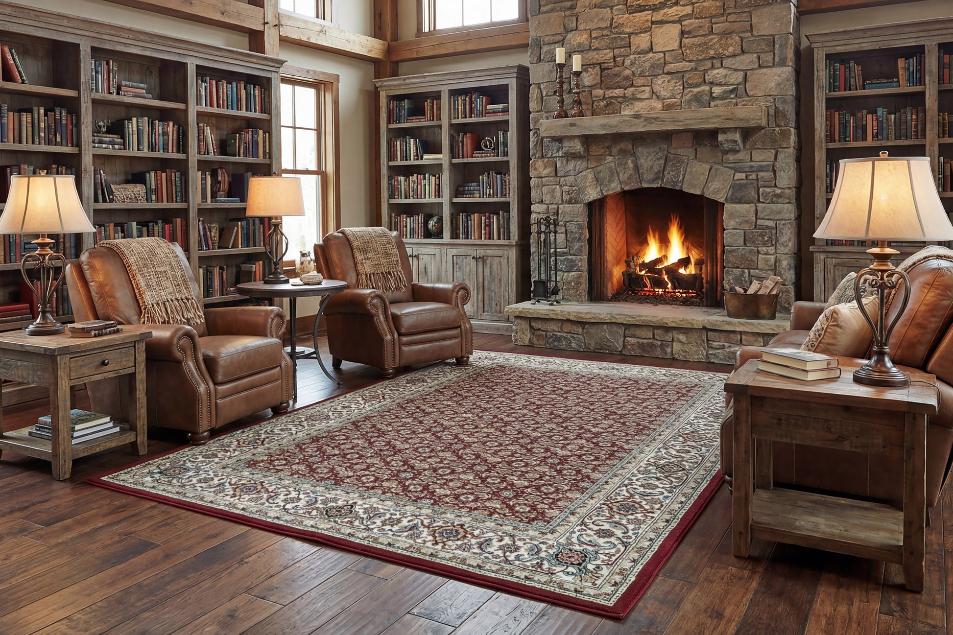 Ancient Garden 57011-1414 Red/Ivory Area Rug