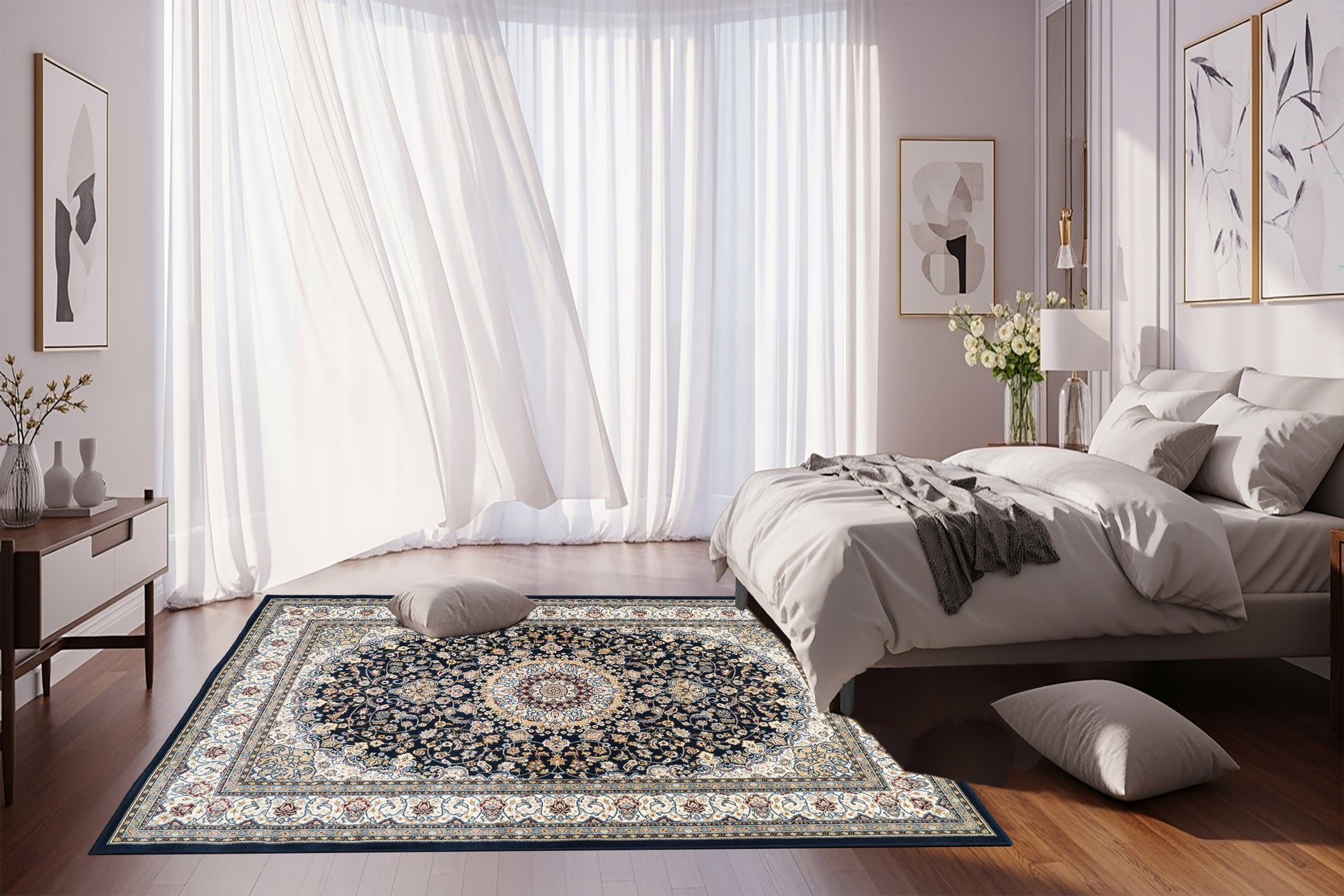 Ancient Garden 57119-3434 Blue/Ivory Area Rug