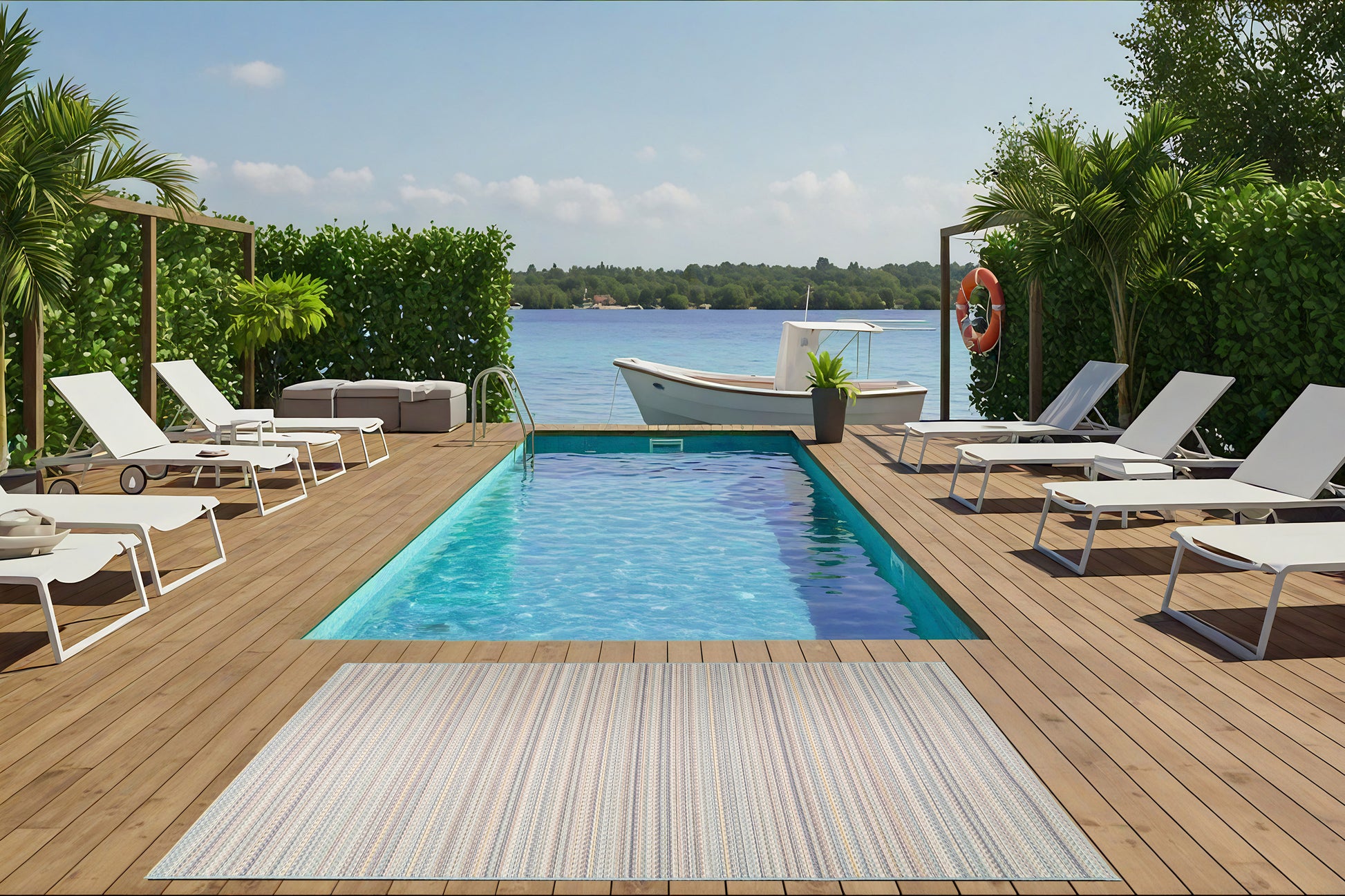 The all-purpose rugs of the Brighton collection are both practical and fashionable for indoor and outdoor spaces. Its modern designs coupled with an alluring color palette allows these rugs to give a subtle yet sophisticated touch to any space. Brighton rugs are polypropylene, thereby providing them with efficient protective qualities, such as being weather-resistant, stain-resistant, and fade-resistant. Brighton rugs are machine-made in Belgium.