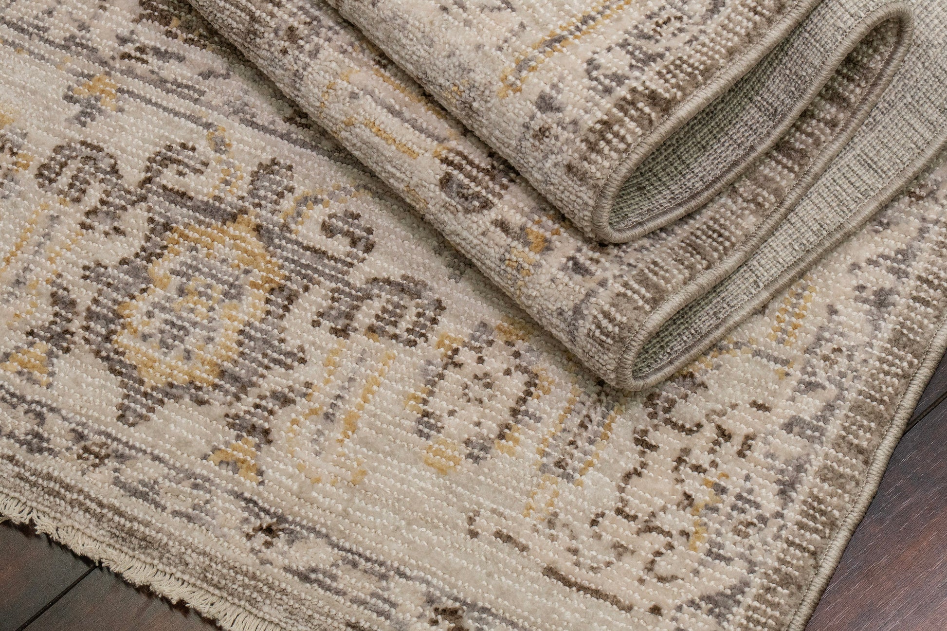 With subtle hues of blue, sepia, and sienna, Calypso rugs manage to successfully walk the fine line between appearing time-worn and modern. Distressed effects overlay complex classic and abstract patterns. This stain-resistant collection is ready to set an understated foundation for your high-traffic space. Machine-made in Turkey and made of shrink polyester and soft polypropylene, these rugs are as smooth and polished to the touch as they are to the eye.