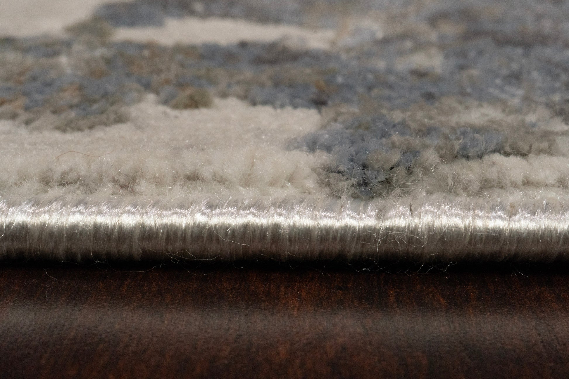 Castilla is made of shrink polyester and polypropylene, machine-made in Turkey. It's tightly packed fibers with a captivating shimmering sheen create for both density in touch and shine in appearance. The soft beiges, greys, and blues make these rugs the perfect complement to neutral settings. The sheen across the surface gives the designs and colors different appearances depending on the angle upon which the rug is looked at.