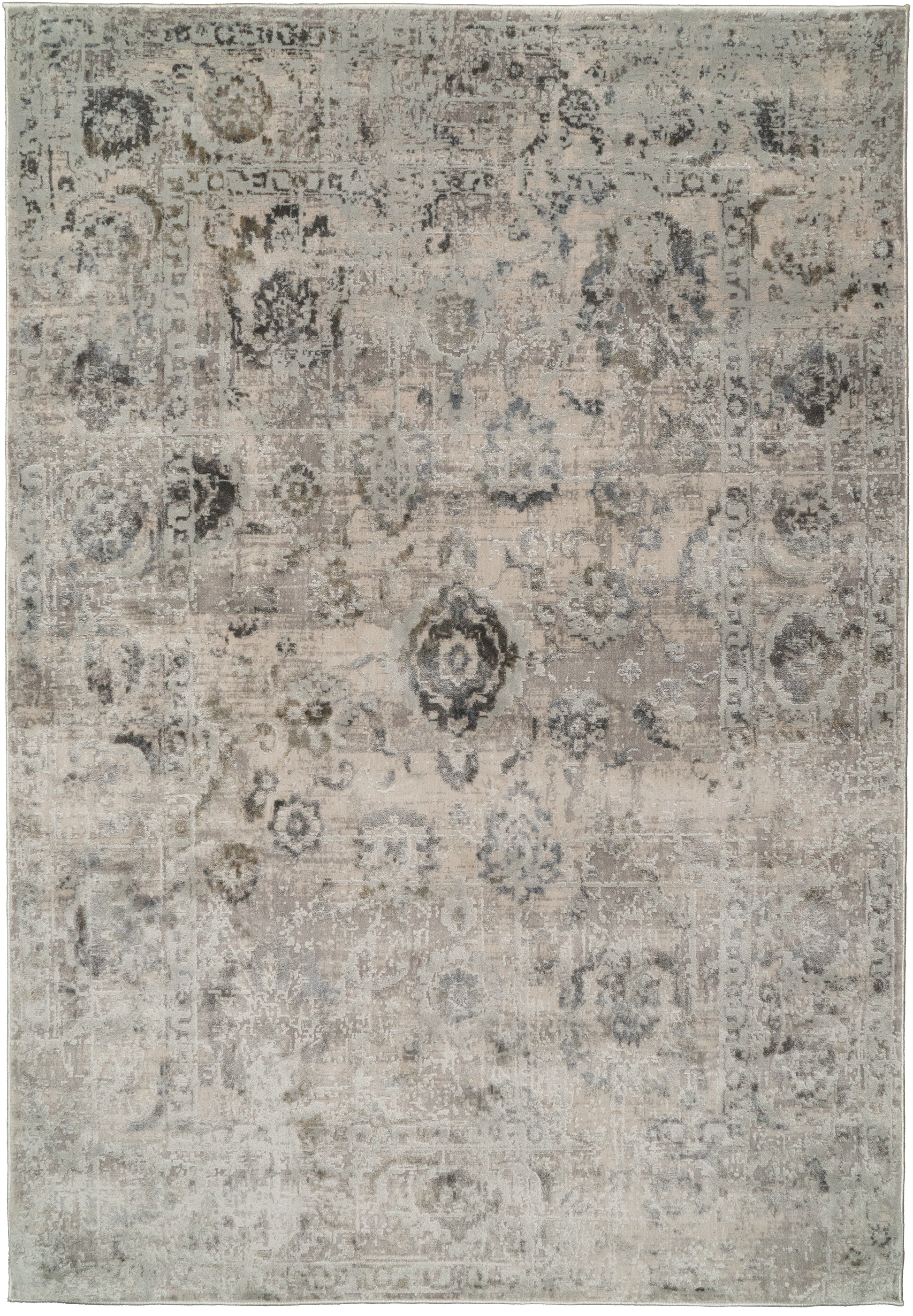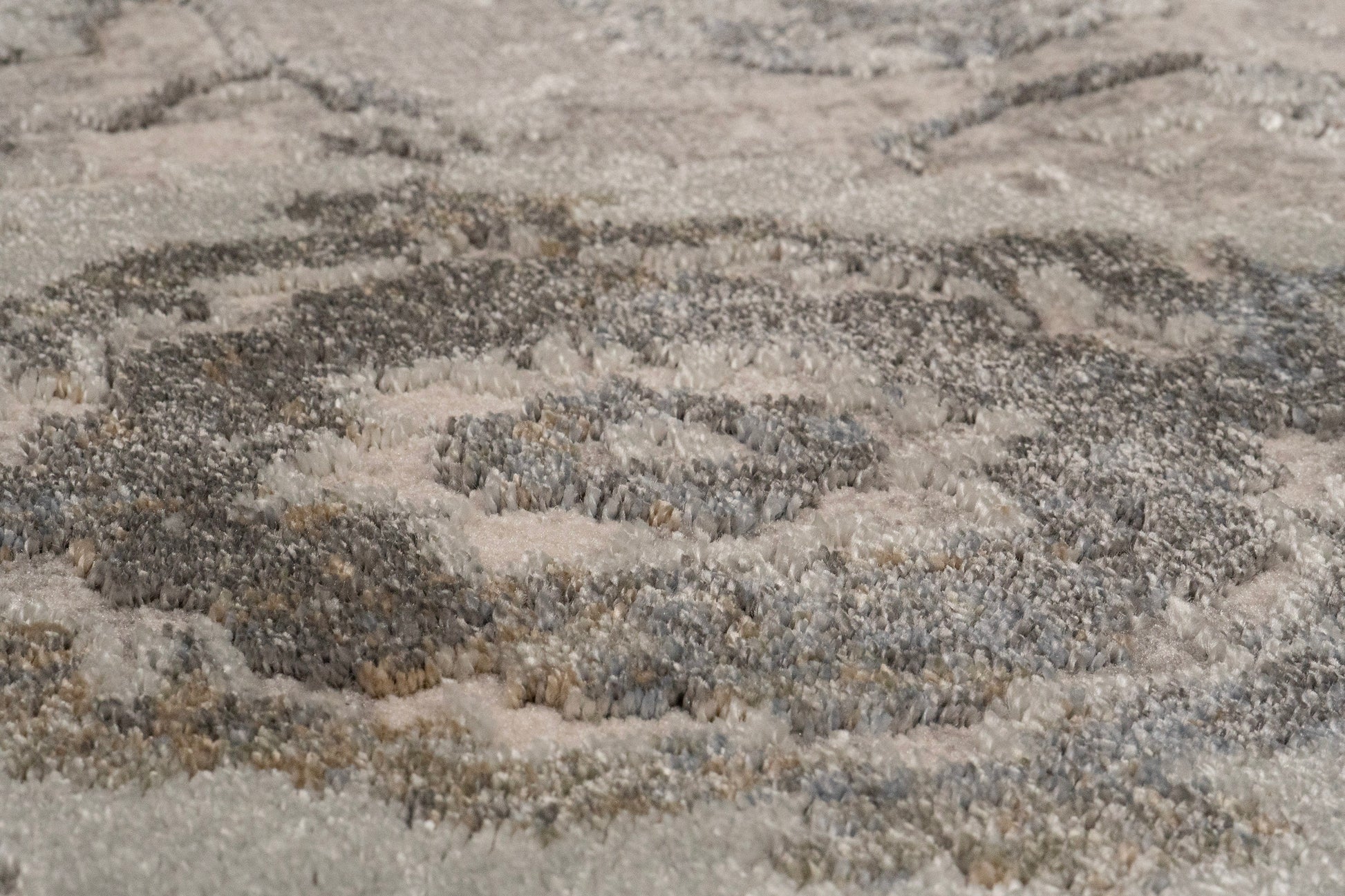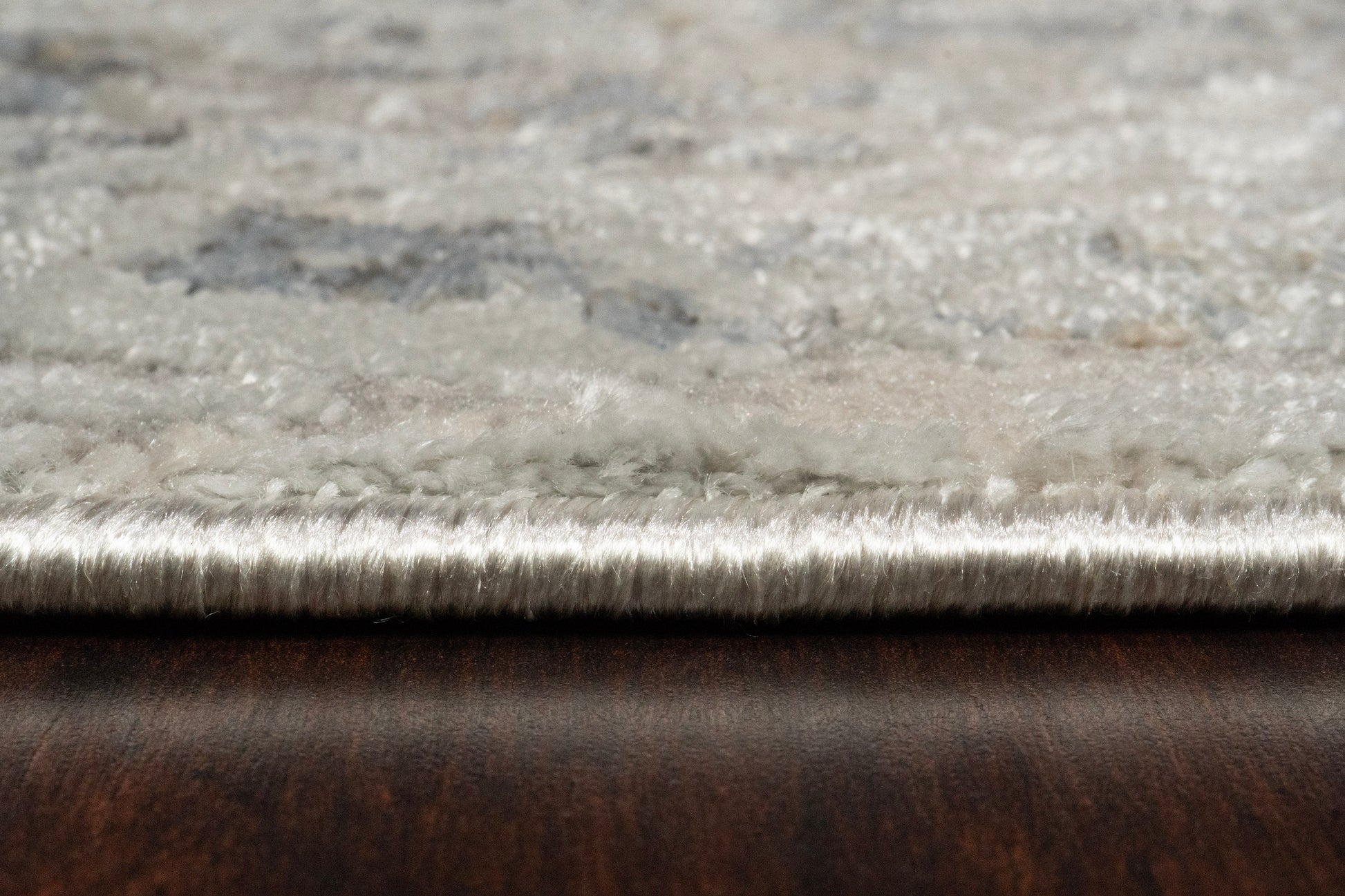 Castilla is made of shrink polyester and polypropylene, machine-made in Turkey. It's tightly packed fibers with a captivating shimmering sheen create for both density in touch and shine in appearance. The soft beiges, greys, and blues make these rugs the perfect complement to neutral settings. The sheen across the surface gives the designs and colors different appearances depending on the angle upon which the rug is looked at.