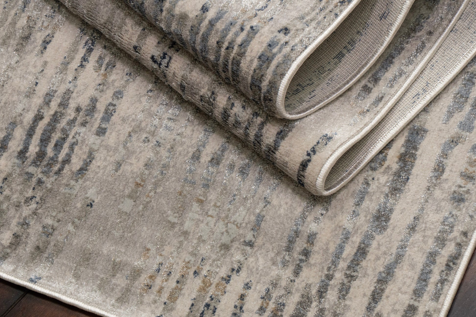 Castilla is made of shrink polyester and polypropylene, machine-made in Turkey. It's tightly packed fibers with a captivating shimmering sheen create for both density in touch and shine in appearance. The soft beiges, greys, and blues make these rugs the perfect complement to neutral settings. The sheen across the surface gives the designs and colors different appearances depending on the angle upon which the rug is looked at.