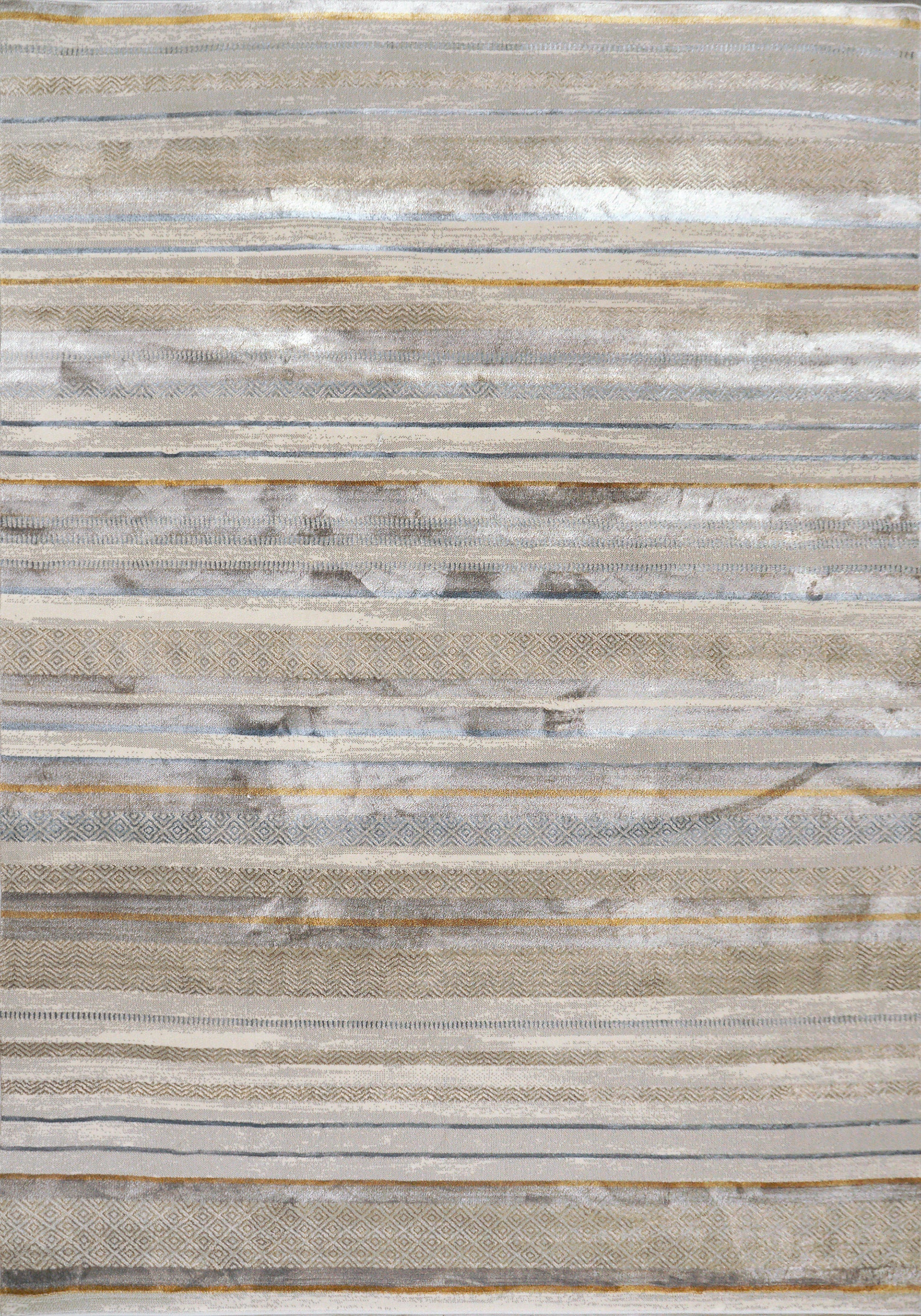 The trendsetting abstract and transitional designs of this collection reflect luxurious contemporary art, comprised of intriguing and unmethodical brushstrokes. Made of polyester and shrink polyester and machine-made in Turkey, Gold is expertly power-loomed and exudes smoothness with just the right amount of sheen. With captivating soft grey hue as its undertone, the perfect canvas is created with subtle colors contrasting an alluring black accent. Non-shedding and easy to care for, these rugs manage to be practical while also being fashion-forward.