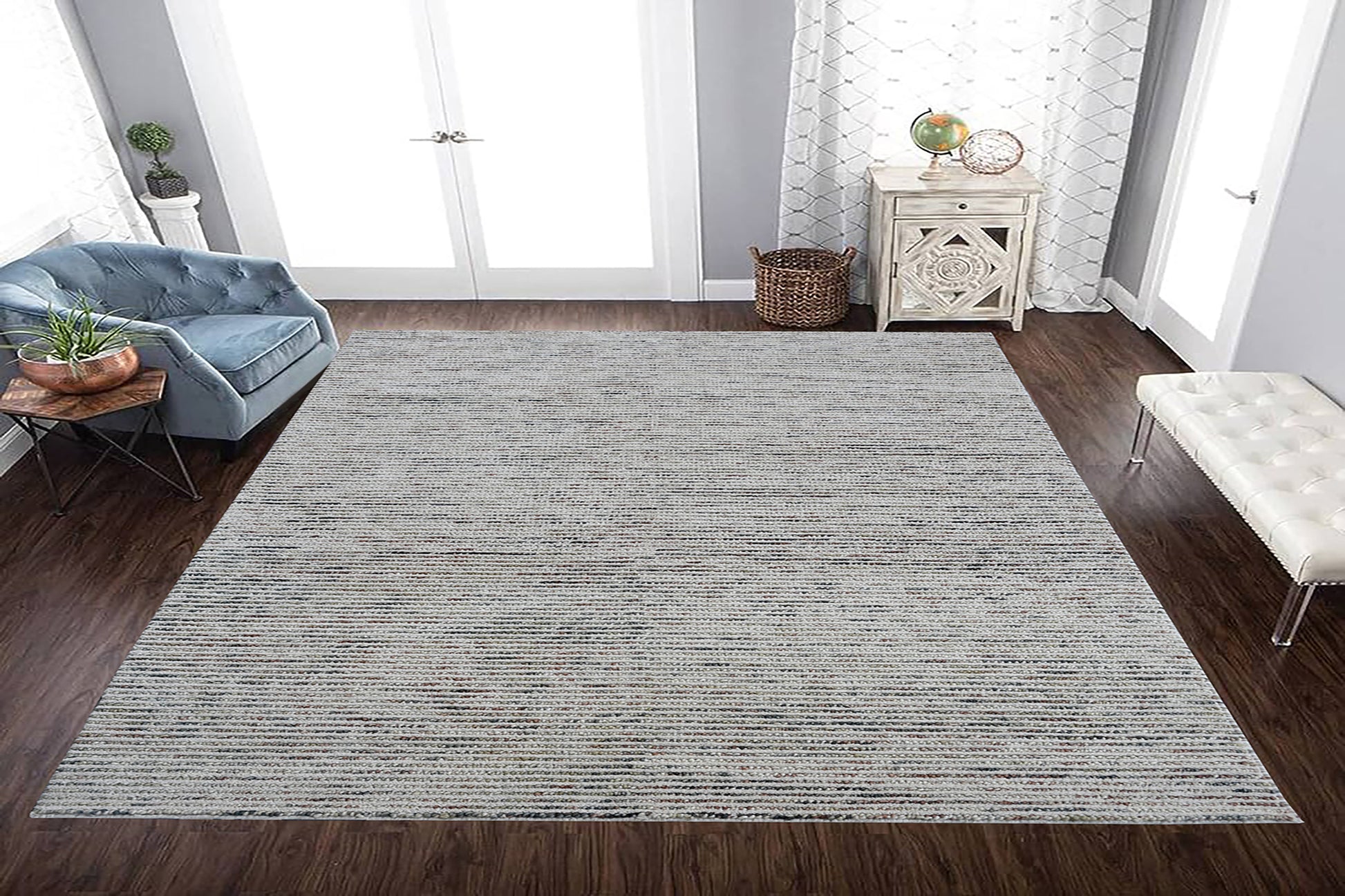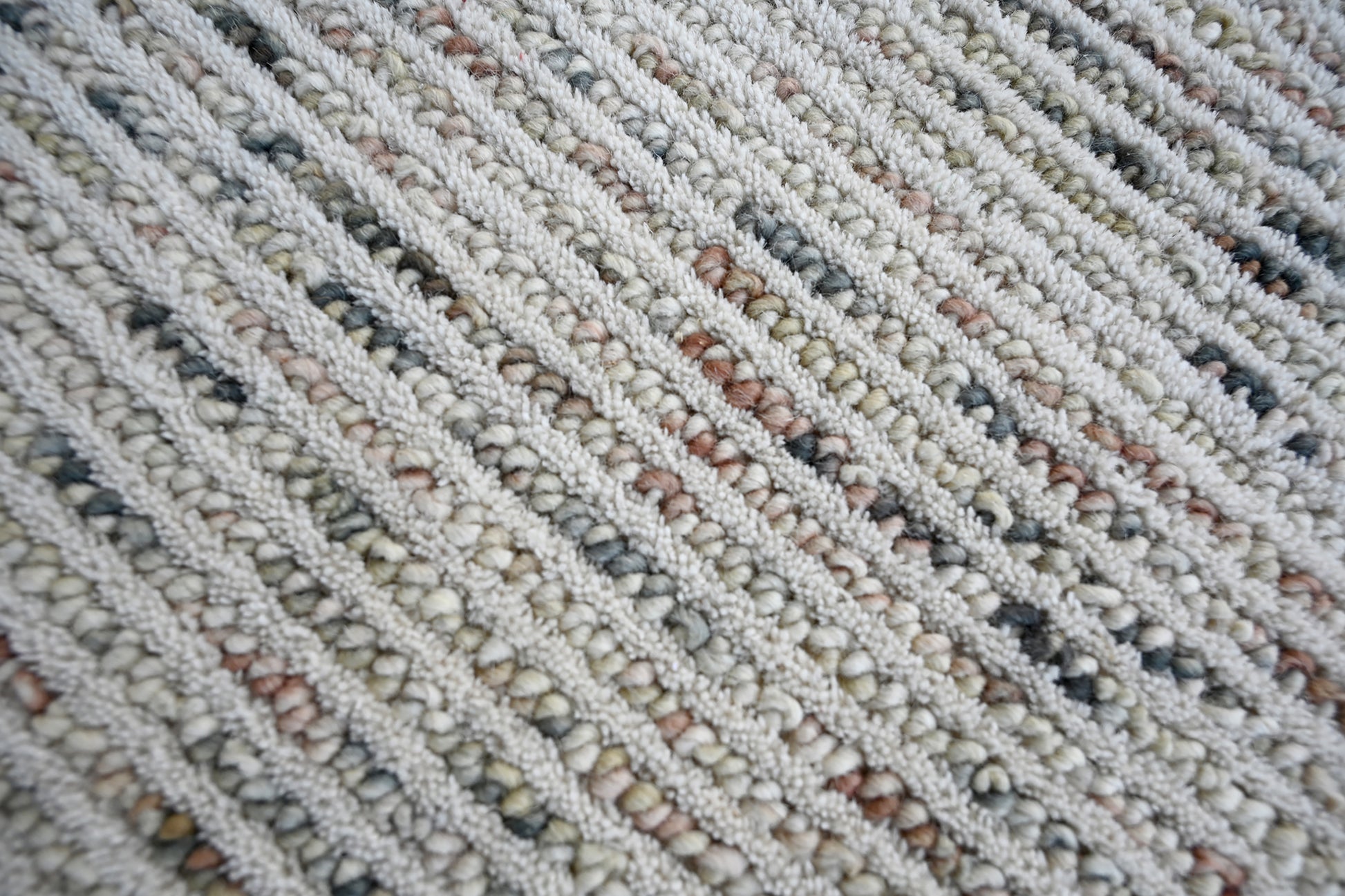 Introduce warmth and style to your space with our Jax collection, a simple and elegant handwoven wool rug, expertly crafted by artisans in India. Showcasing a simple linear design, this rug combines neutral beige tones with warm burnt terracotta and sage green shades.