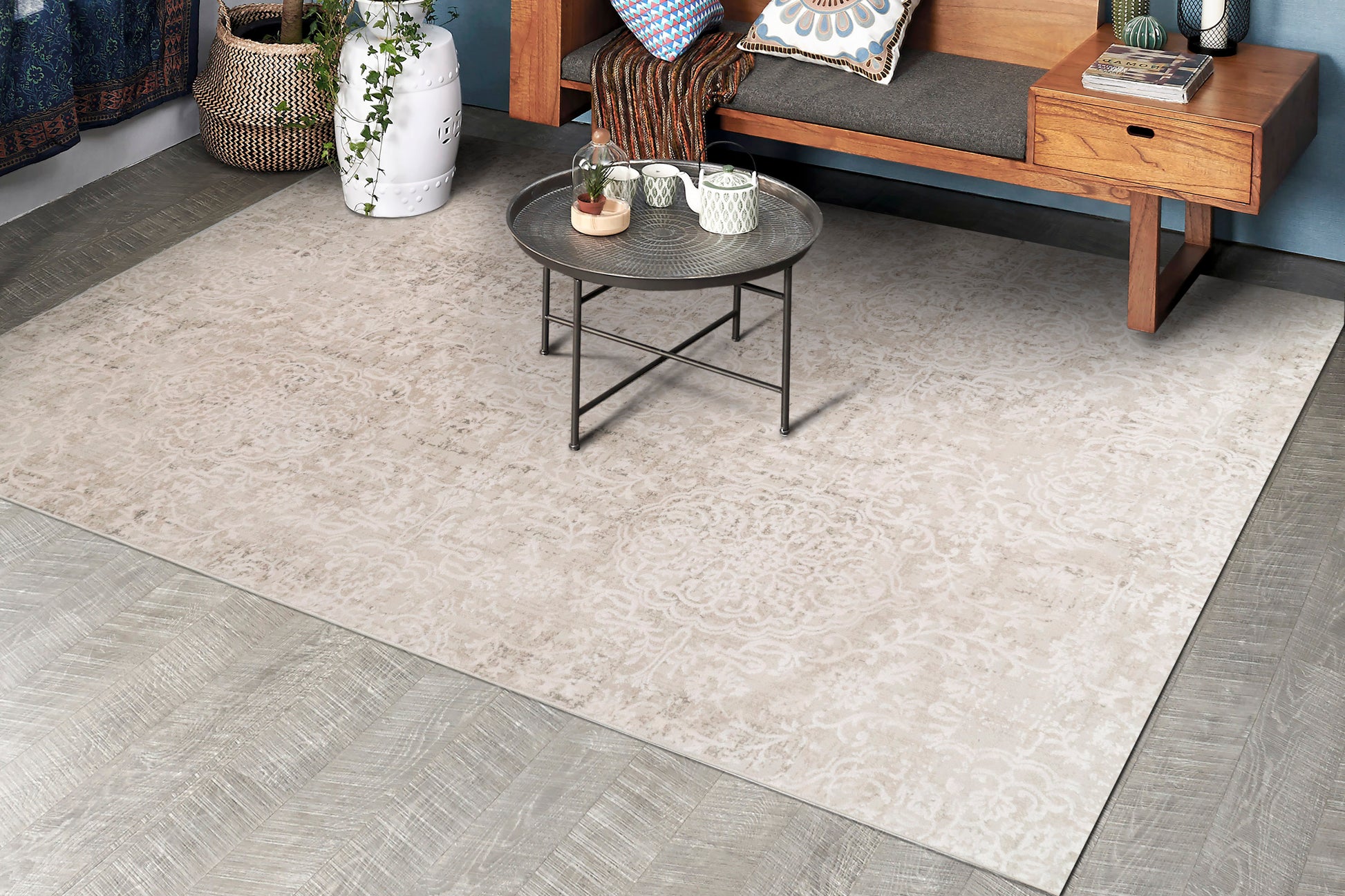Using classic traditional designs with distressed motifs and pristine coloration Quartz bounds ahead as one of the most exquisite qualities. Pairing viscose with a special form of shrink polyester to create a high-low texture, Quartz adds depth to each design. With a wool like feel and soft relaxed touch this machine-made rug will add the high end look and feel of a hand-knotted wool underfoot.