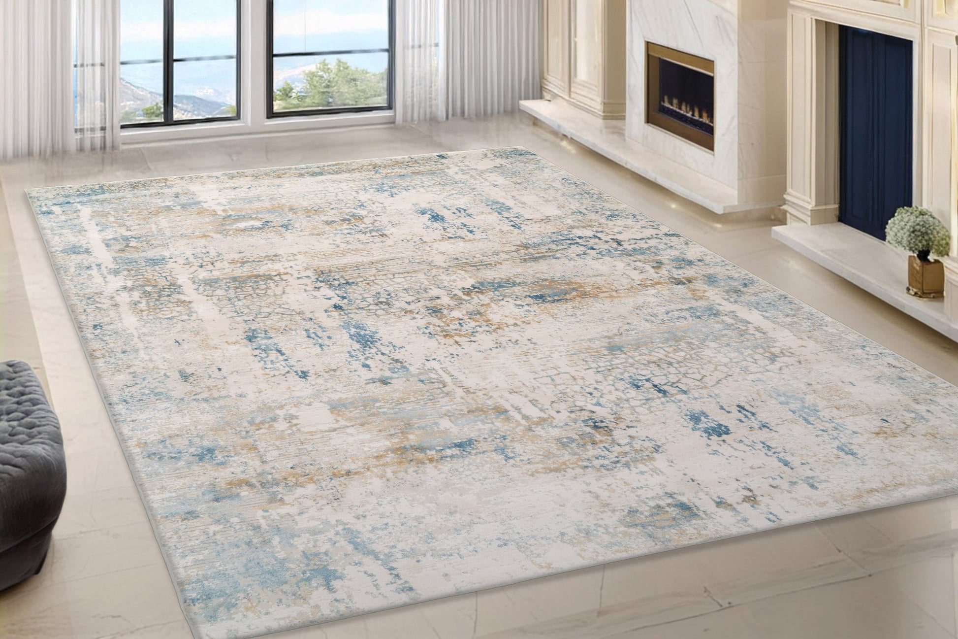 Quartz 27050-150 Ivory/Blue Area Rug